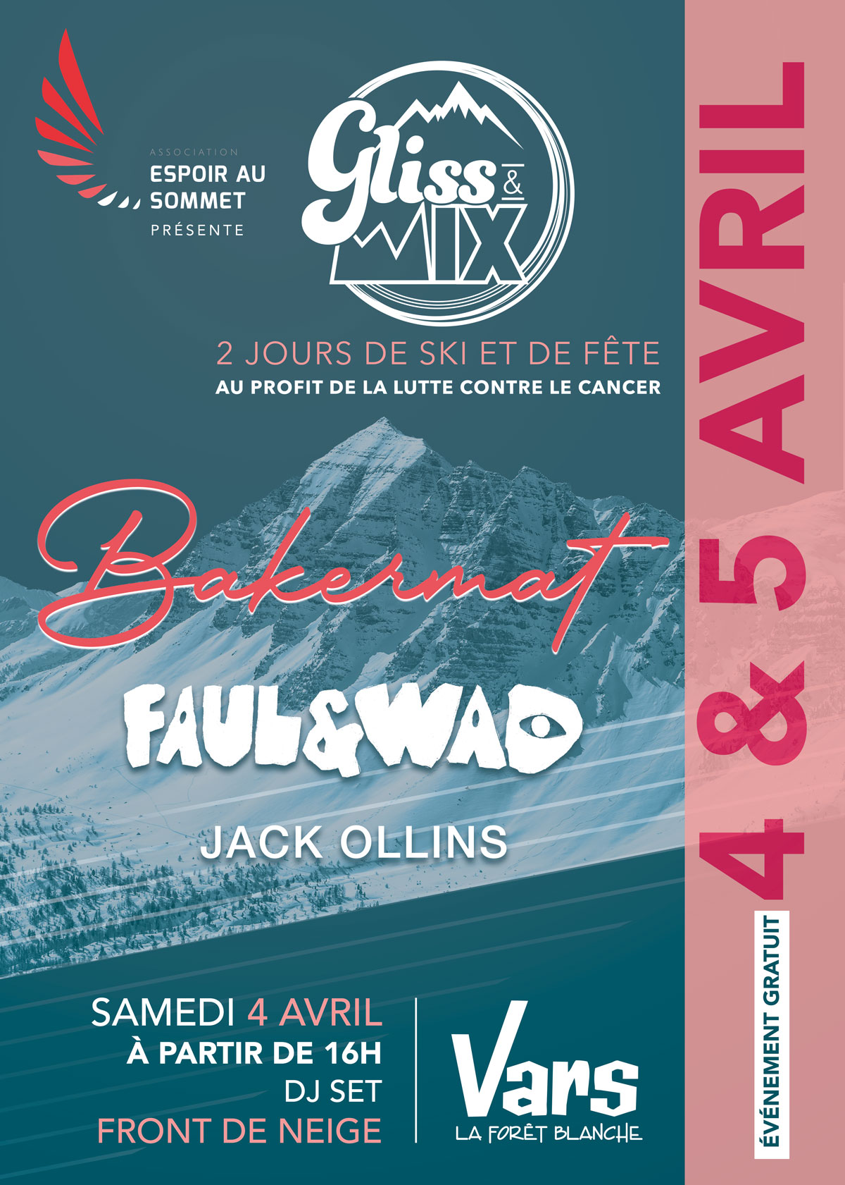 Une association loi 1901 à but non lucratif, forte de l’expérience de quatre Marseillais dynamiques ayant pour envie de « faire bouger les lignes ». L’objectif est simple : organiser des événements et manifestations au profit de la lutte contre le cancer. Le calendrier de l’association s’appuiera sur un temps fort : l’opération Gliss & Mix organisée du Vendredi 4 au dimanche 6 avril à Vars.